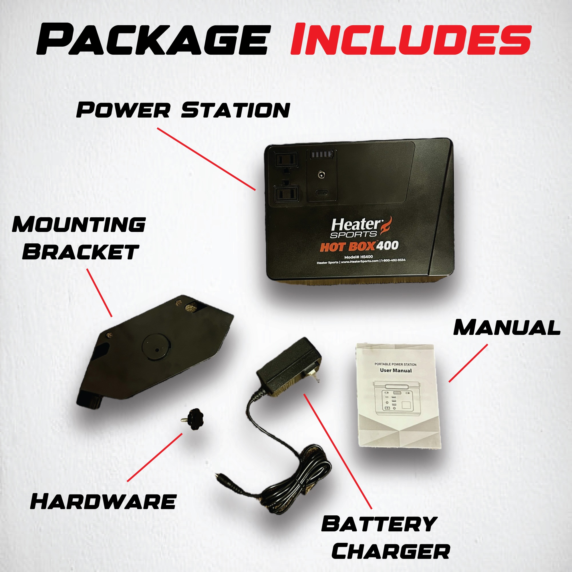 With a lightweight design at only 4 lbs. and a small compact size of 9" x 6" x 2" the Heater Hot Box 400 is the most convenient battery pack on the market.